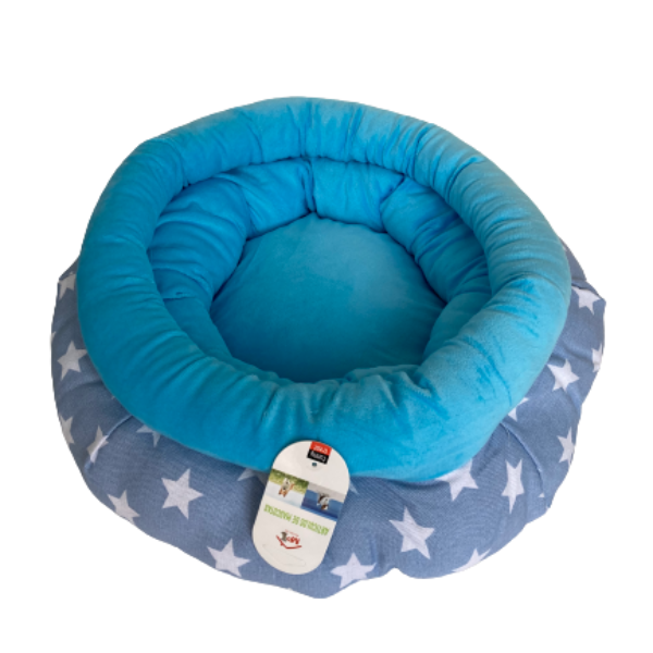 Brinda a tu perrito pequeño el descanso que se merece con nuestra cama celeste con estrellas. Con un encantador diseño de estrellas sobre un fondo celeste claro y un interior en un tono más oscuro, esta cama de 45 cm ofrece comodidad y un toque de serenidad en su espacio.