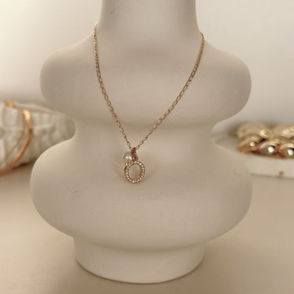 Collar Círculo con Brillantes & Perlita – Acero Hipoalergénico
