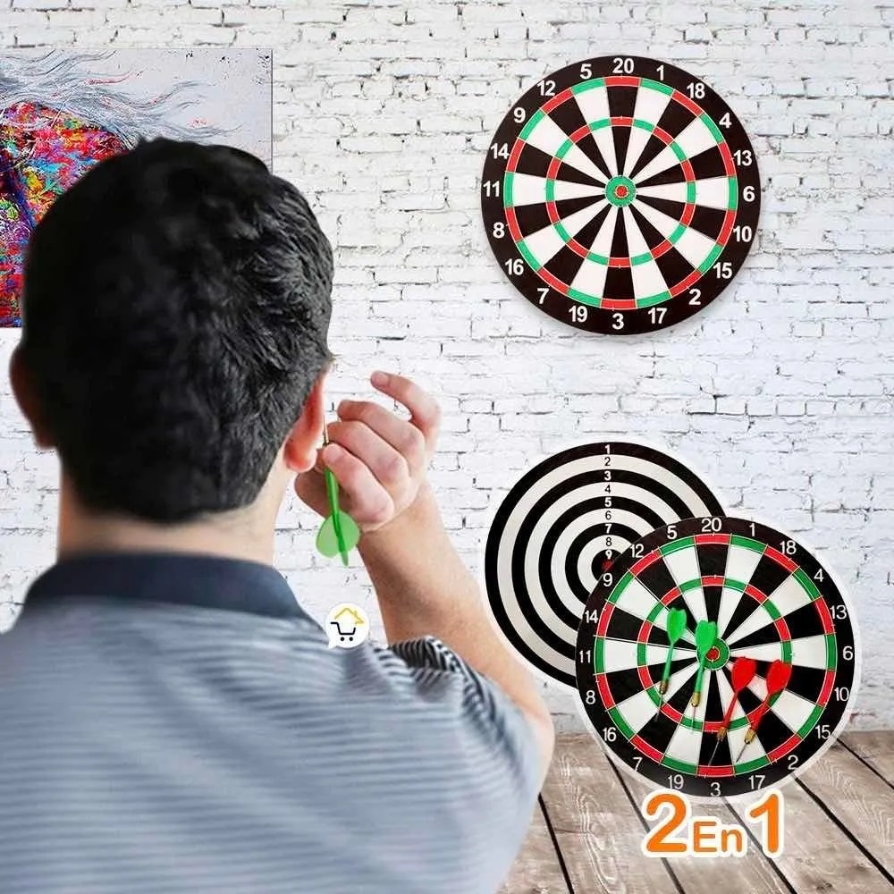 Tablero de Tiro al Blanco Reversible 43 cm – Incluye 6 Dardos