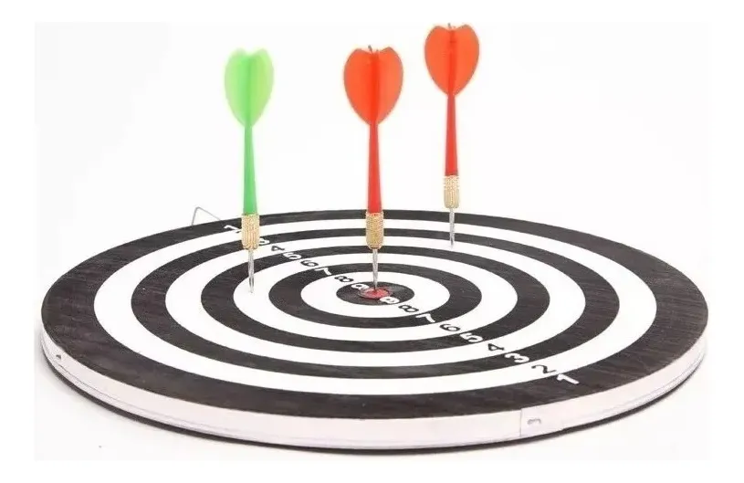Tablero de tiro al blanco de 43 cm, con diseño reversible para disfrutar de dos juegos en uno. Incluye 6 dardos de punta metálica, ideal para pasar momentos de diversión en familia o con amigos.